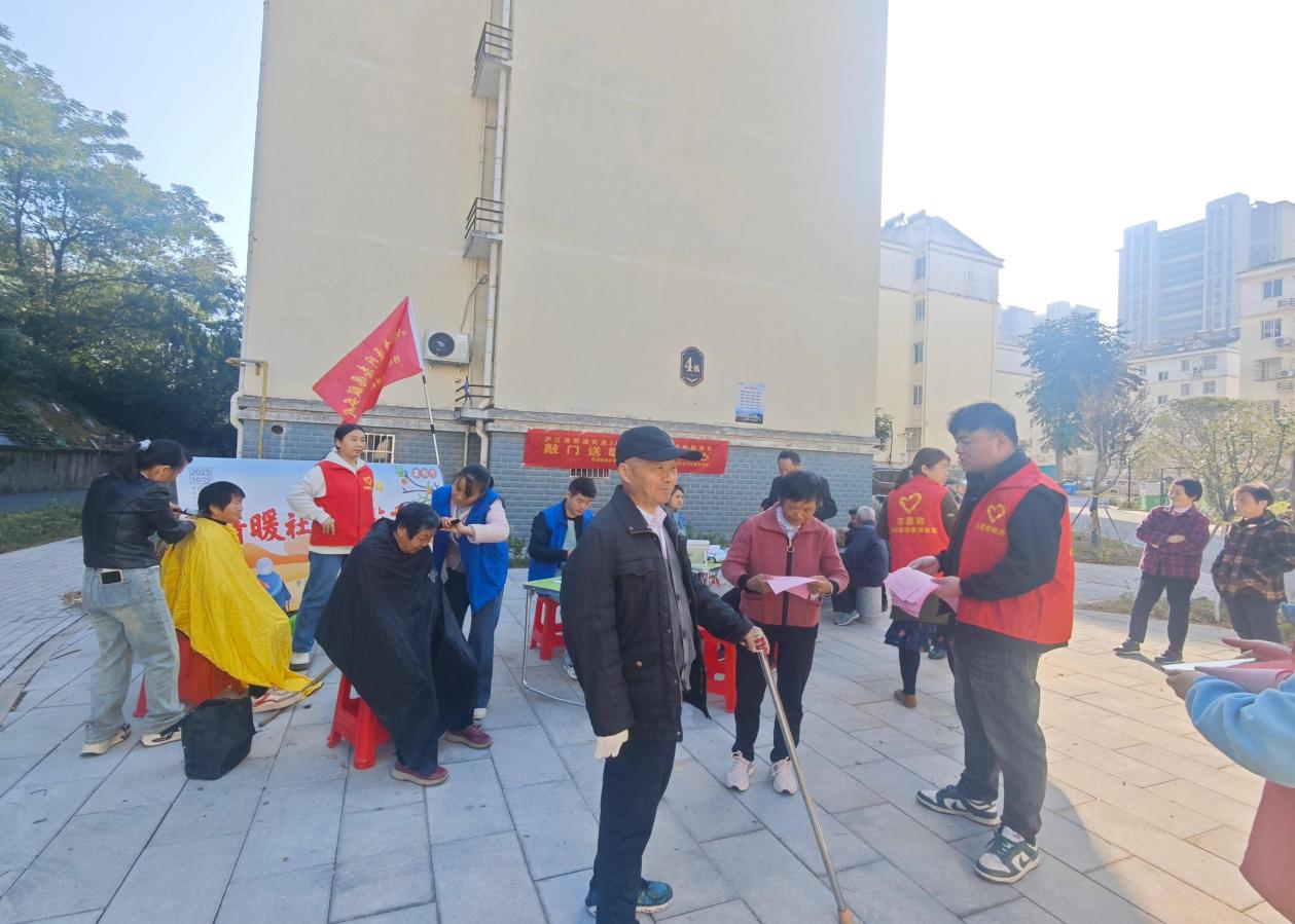 与此同时,义诊义剪区域也排起了长队,温情涌动。移湖社区卫生站的医生和志愿者耐心为老人们测量血压、提供健康咨询,细致解答关于常见病、慢性病的预防与调理问题。另一边,三名技艺娴熟的志愿者理发师手中的剪刀上下翻飞,为老人们理出清爽利落的新发型。精湛的手艺和热情的服务赢得了老人们的连连称赞,一位刚理完发的王大爷摸着新发型高兴地说:“这发型理得真精神,感觉年轻了好几岁,过节的心情更好了!”
