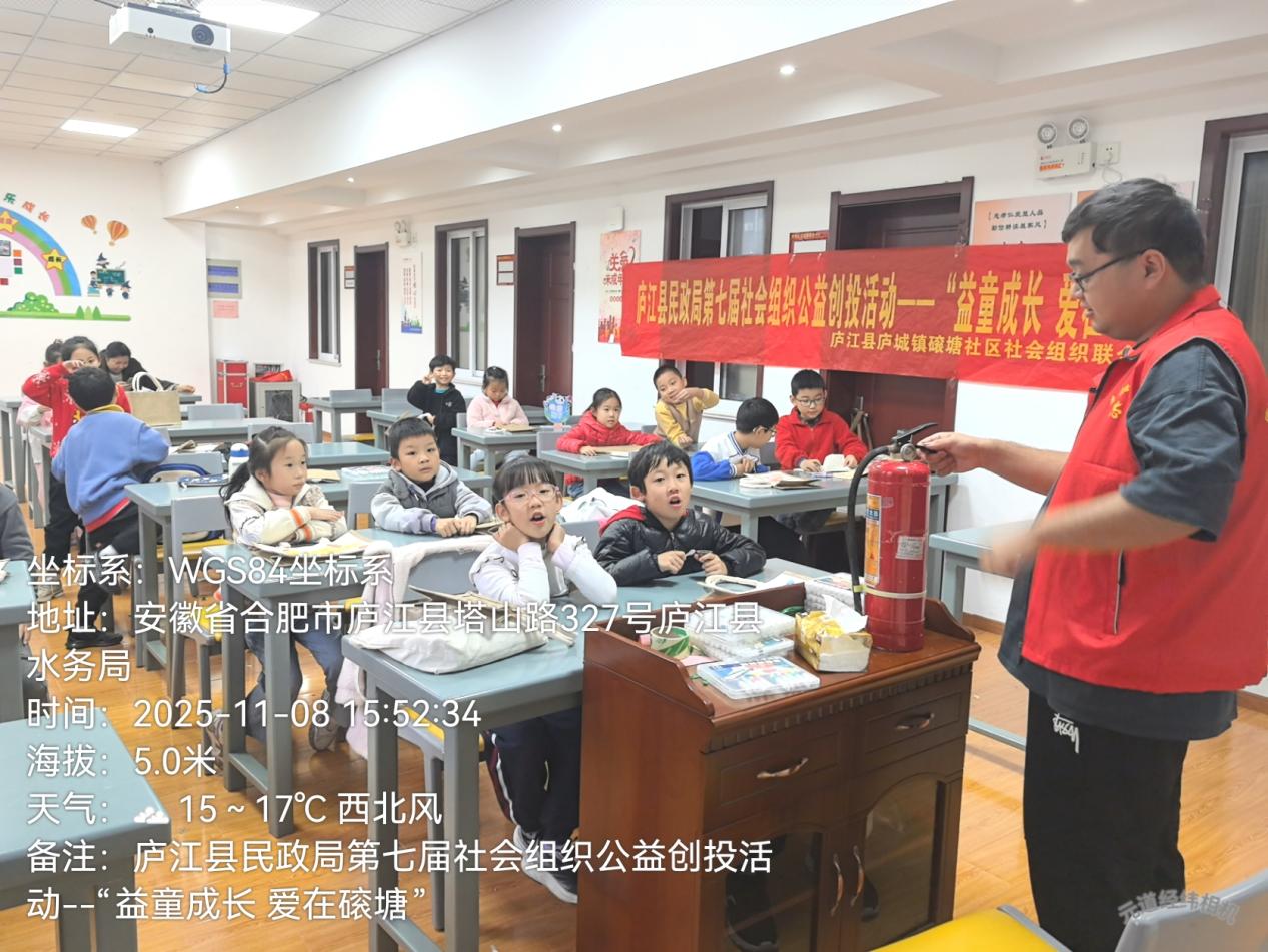 在庐江县第七届社会组织公益创投项目和庐江县福利彩票公益金的支持下,一场以“‘童’筑安全防线,爱暖磙塘社区”为主题的系列消防安全教育活动于11月7日至8日在庐江县磙塘社区生动展开。活动通过“专业引领+志愿接力”的创新模式,为社区幼儿及困境留守儿童筑起了一道坚实的安全防线。