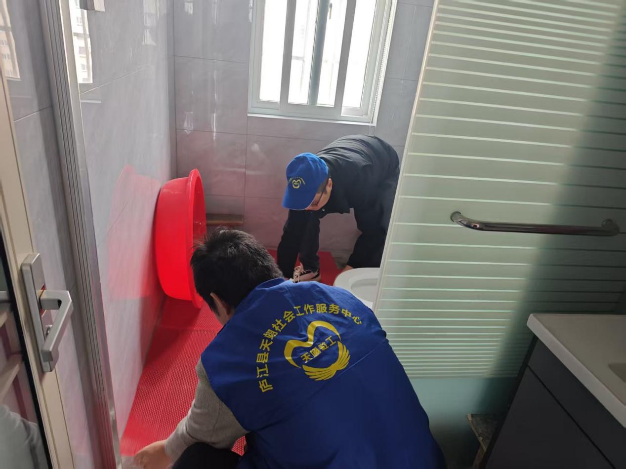 敲门送暖,安居提升 ——庐江县为特殊困难群众筑牢居家“安全网” 寒冬将至,民生挂心。11月23日-25日,庐江县天翊社会工作服务中心的社工和志愿者带着防滑垫、扶手和满满的关怀,走进移湖街道8名特殊困难老人的家中,开展了一场名为“安居提升,隐患排查”的月度关爱活动。这是该中心执行的“2025年服务类社会救助项目——‘敲门送暖,家访连心’”中的一项具体行动,旨在通过细微之处的改造,为服务对象筑起一道坚实的居家安全屏障。